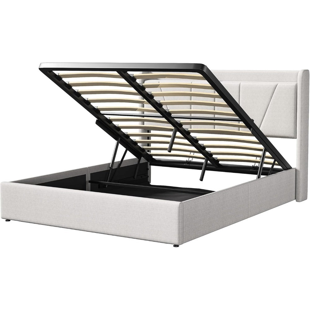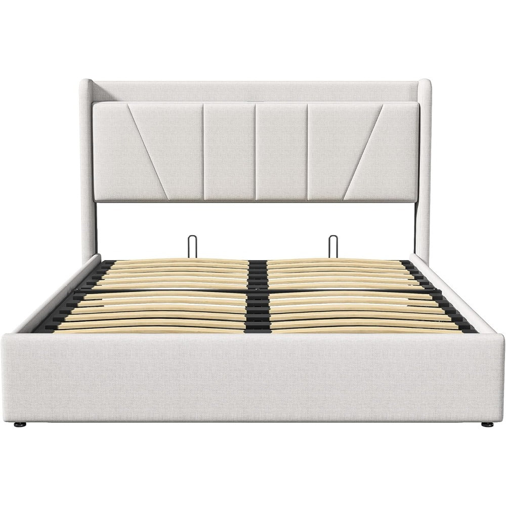 Design-Polsterbett mit USB & USB-C Ladestation | Hydraulik-Stauraum | Kopfteil mit Ablage | Leinen-Optik 160 X 200