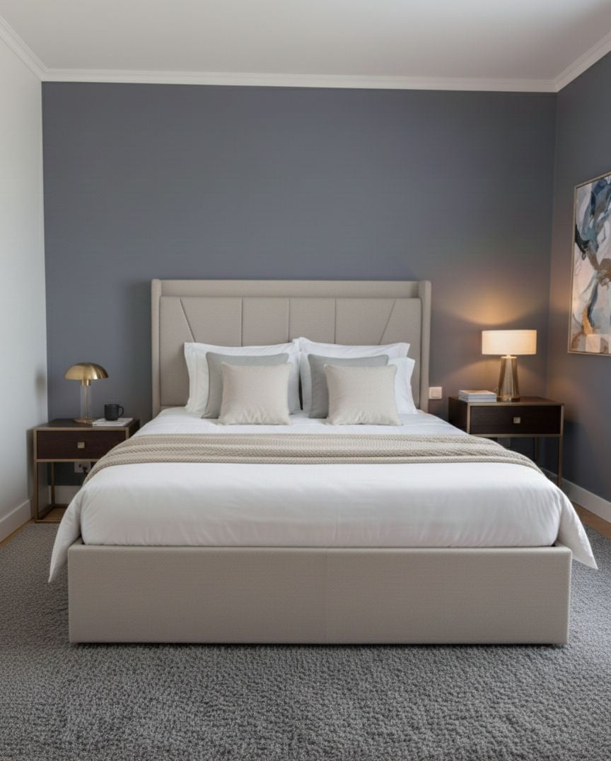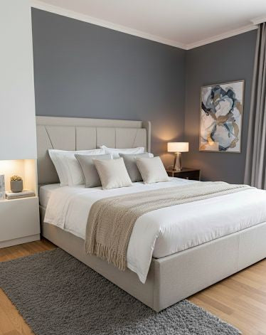 Praktische Kopfleiste: Die flache Ablage auf dem Kopfteil bietet den perfekten Platz für Ihr Handy, Brillen oder Dekoration, damit alles Wichtige sofort griffbereit ist.