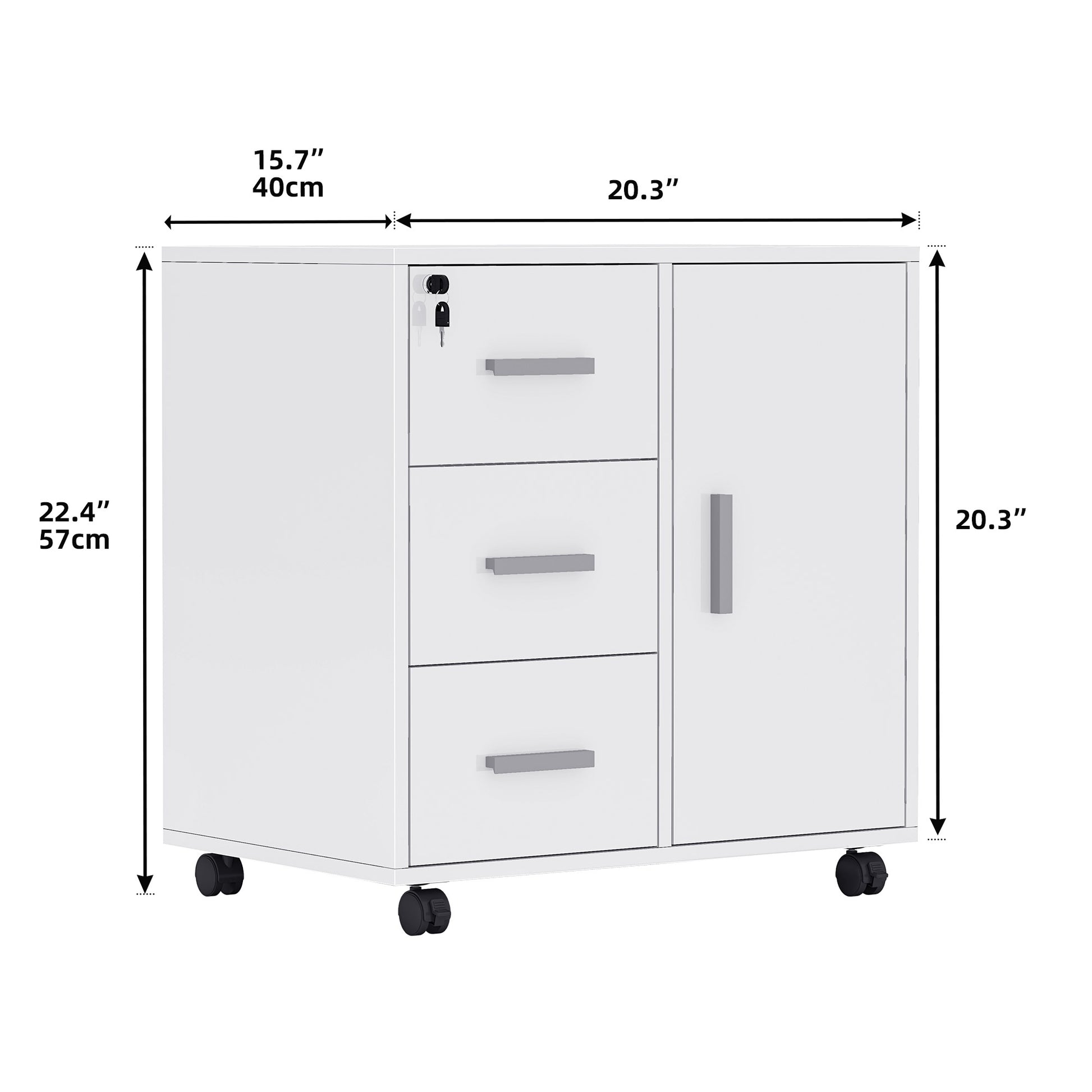 Feststellfunktion: Zwei der Rollen verfügen über Bremsen, damit der Schrank während der Nutzung fest und sicher an seinem Platz bleibt.
